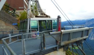 A felső állomáshoz érve a kabin lassít, majd szépen lassan beáll a rámpához, lenyílik a korlát és lehet kiszállni. Az egész utazásban ez az utolsó kb. fél perc a leg-idegtépőbb, amikor már majdnem megáll a kabin, de még nem vagyunk ott a rámpánál, és centiről centire haladva emelkedünk a megfelelő helyre. Ilyenkor nagy megkönnyebbülés, amikor kinyílik az ajtó.