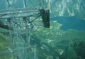 A felső állomás rámpája kicsit kinyúlik a sziklák fölé, és acélrácsból készült. Teljesen stabil és biztonságos. Csak félelmetes egy kicsit. 🙂