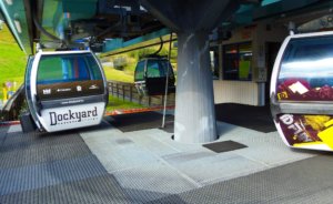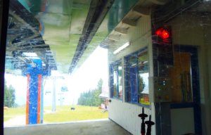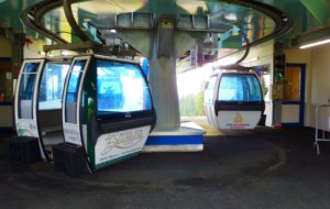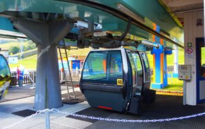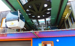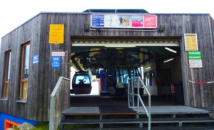 A nagy épület mögött egy pici alsó állomást találunk. Az állomáson a kabinok egészen lassan haladnak, és van hely és idő a ki- és beszálláshoz.
