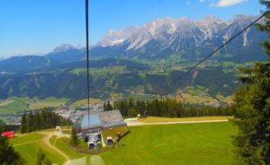 Schladming belvárosából a kis-kabinos felvonó 1825 méter magasságba repít, ahonnan lélegzetelállító körpanoráma tárul elénk az Alpok vonulataira. De a felvonózás is egy élmény! 🙂