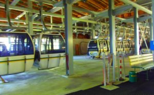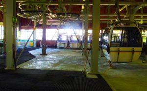 A felvonó szempontjából viszont sokkal jelentősebb ez az állomás, ugyanis itt tárolják a “felesleges” kabinokat, amik hosszú, kanyargó sínről lógnak az épületben.