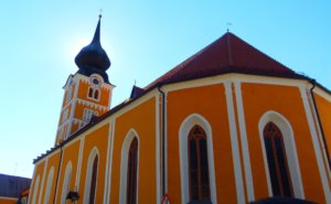 A katolikus plébánia templom eredetileg későromantikus stílusban épült, 1522 és 1532 között egészítették ki háromhajós templommá.