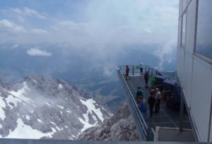 A hegyállomás másik oldalán “kitett úton”, acélszerkezetből a szikla oldalához rögzített, a szakadék fölé nyúló úton mehetünk a “lépcső a semmibe” lejárathoz. 14 kis lépcső vezet egy üvegpadlós teraszra a semmi fölött. Illetve ami alatta van, az nem semmi, hanem egy 400 méter mély szakadék. 🙂