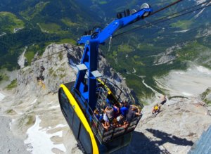 A kabinos felvonó is egy nagy élmény, két dolog miatt is. Az egyik, hogy a felvonó völgy és hegyállomása között csak a kifeszített drótkötél lóg, nincs oszlop. Ez első ránézésre kicsit félelmetes, de teljesen biztonságos. Ami azonban még ennél is nagyobb élmény, az az egyik kabin tetején található terasz, ahol 10 szerencsés és nagyon bátor vállalkozó utazhat fel vagy le.