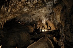 Sajnos a barlang halvány világítása miatt is zöldellnek a kövek néhol, de a vakuk villogása sokkal nagyobb fénnyel járna. (Egyébként sem érdemes vakuval fényképezni, mert a barlang annyira nagy, hogy a vaku fénye nem tudja bevilágítani, így rossz lesz a kép. Ha már nem bírjátok ki, inkább vaku nélkül, éjszakai beállítással, hosszú záridővel próbálkozzatok, miközben letámasztjátok a gépet valahova. Az én képeim is így készültek. (Nem is lettek túl jók.) Csak az idegenvezető meg ne lássa!) 🙂