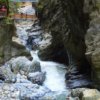 Tovább haladva következik a “kis szurdok”. A völgy összeszűkül, és a hatalmas sziklák között fahidakon haladhatunk tovább. A hidak alatt pedig ott csobog a hihetetlen színekben pompázó Mendlingbach.