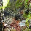 Ismét egy “lépcső”, majd egy szakasz valóban kiépítetlen patakmeder következik. Ezen a szakaszon eszembe jutott a Weichtalklamm, a kiépítetlen, ahol szintén a patakmederben kell menni sziklákon, farönkökön keresztül. A különbség csak annyi, hogy míg a Kőszikla szurdokban pár méter az ilyen szakasz, a Weichtalklamm-ban kb. 1,5 óra. 🙂