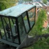 És, hogy mitől különleges ez a sikló még? Gondolkozzunk csak, milyen egy “rendes” sikló? Olyan mint Grazban a kanyar sikló, vagy Prágában a Petrin dombra közlekedő, vagy a 125 éves sikló Salzburgban. Mindegyik kabinja hosszú és megdöntött, a belseje lépcsőzetesen van elrendezve, a beszálláshoz is lépcsőn kell felmenni mellette. Mindegyik pályája meredeken emelkedik egy irányba, ezért a megdöntött kabinban lépcsőzetesen vannak beépítve a vízszintes padlók. Csakhogy ez a pálya emelkedik is és lejt is, itt ha fix lenne a padló, az hol erre dőlne, hol arra…