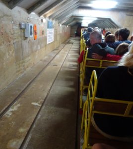 Majdnem 2 km hosszan “száguld” utasaival a kisvonat. Rajta ülve valóban száguldásnak tűnik, lobog a hajunk a szélben. Közben néhol nagyon közel megy a sziklákhoz, a barlang falához. Éppen ezért a vonaton felállni, kihajolni vagy kinyúlni (mutogatni) saját érdekünkben szigorúan tilos. Tehát a vonaton ülve kerüljük a hirtelen és széles mozdulatokat, inkább gyönyörködjünk a barlang szépségében. Közben számítsunk néha csepegő vízre is, hiszen a cseppkőbarlangnak ez a lényege. (Egy vízhatlan kapucnis felső tehát nem árt.)